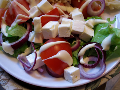| Iltapalani. Kyllä, siinä on melko paljon ruokaa yhdelle vatsalle. Nuo kököt spagetin päällä eivät ole lihapullia, vaan punaista pestoa♥ Taivaallisen hyvää! Tyhjä masu kiittää! |