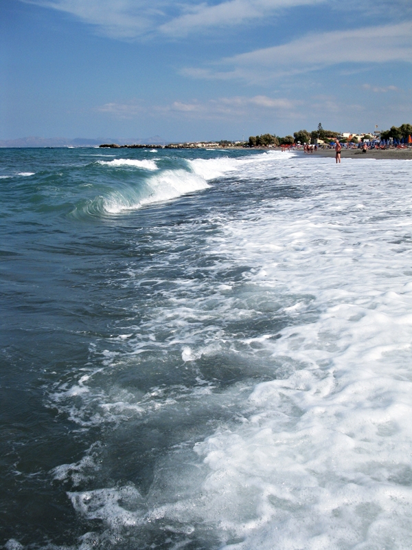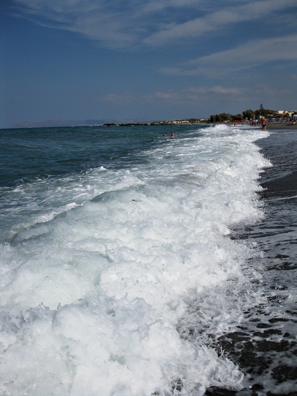 Ekana päivänä oli Välimeressä myös isoimmat aallot, siis tosi isot. En pysynyt pystyssä aaltojen lyödessä vastaan ja ne heittivät mua aina vain rantaan päin. Lopulta en päässyt enää ylös, ja aallot olivat niin voimakkaita että ne raahasivat mua pitkin rantaa. Sain polviin kipeät naarmut rannan kivissä pyörimisestä. Vesi oli myös tosi suolaista, hörppäsin sitä vähän kun aalto löi yli. Siitä tuli tosi paha olo.